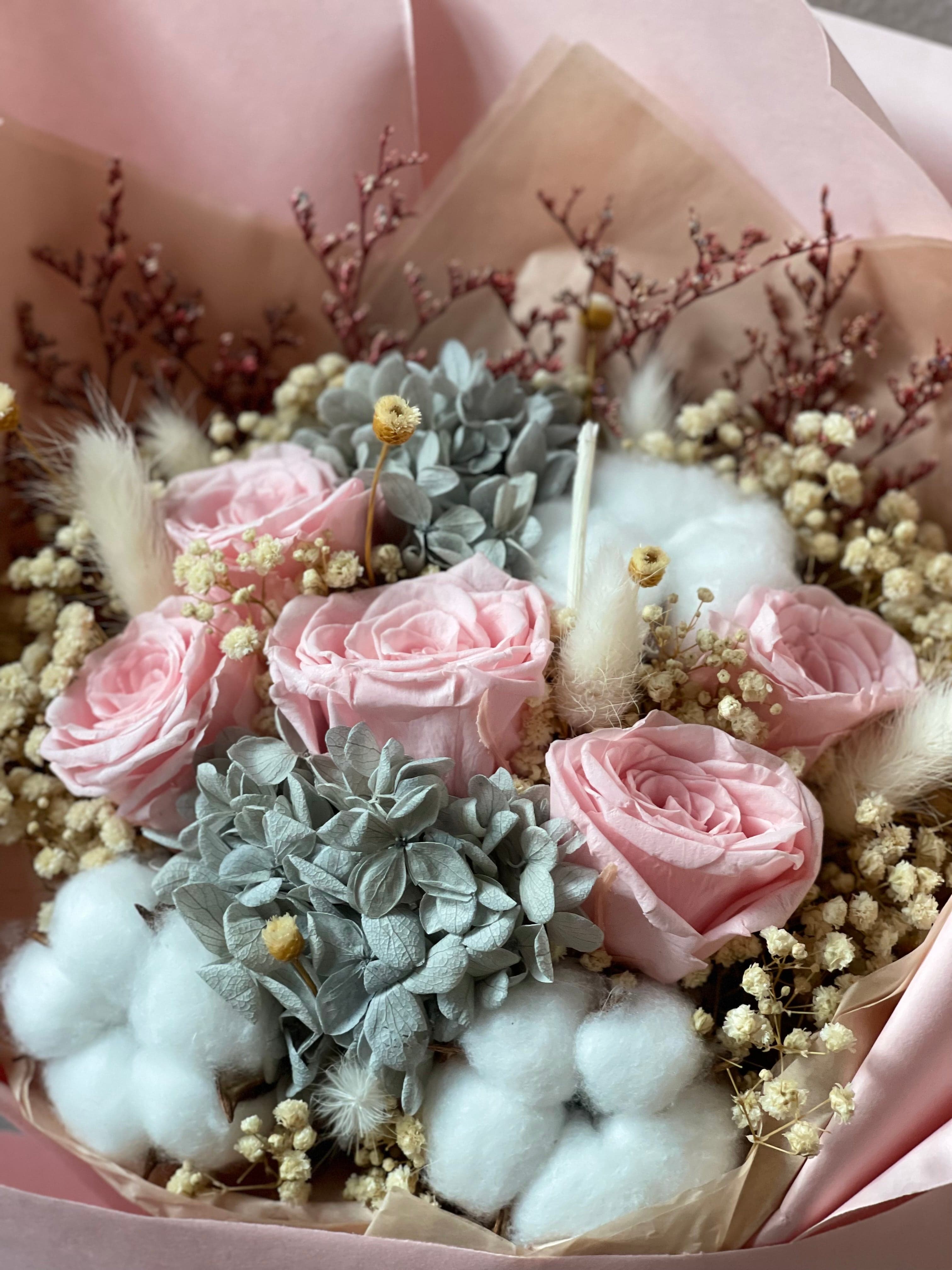 When it comes to conveying love and heartfelt emotions, preserved flowers provide an array of choices. From classic red roses to graceful lilies, preserved flower arrangements cater to diverse tastes and preferences. These exquisite blossoms are meticulously preserved to retain their innate beauty and freshness, enabling you to savor their charm for years to come. For instance, Kate's preserved flower bouquet serves as a perfect example of expressing love and sentiments through the enduring beauty of preserved flowers.