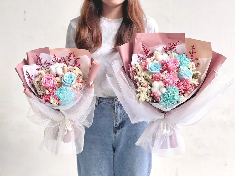 Romantic Red Rose with Eucalyptus - Preserved Rose Bouquet