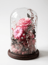 • Handcrafted preserved floral arrangement in a glass dome